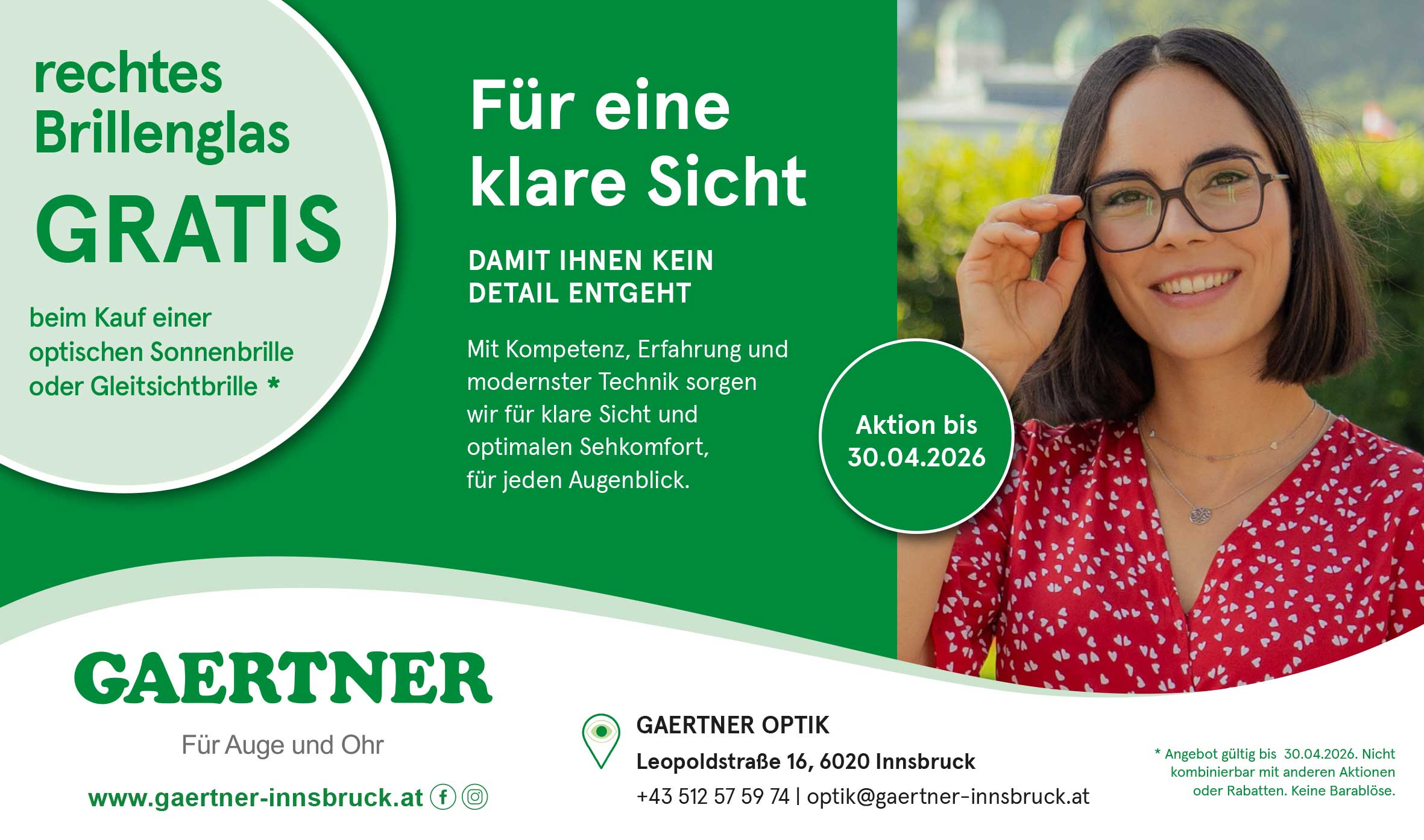 Gutes Sehen und gutes Hören bedeuten Lebensfreude, Sicherheit und echte Nähe zu anderen Menschen. Genau dafür nehmen wir uns bei Gaertner Zeit. Als Optiker und Hörakustiker in Innsbruck begleiten wir Sie persönlich auf dem Weg zu besserem Sehen und Hören – mit maßgeschneiderten Lösungen, ehrlicher Beratung und viel Erfahrung.